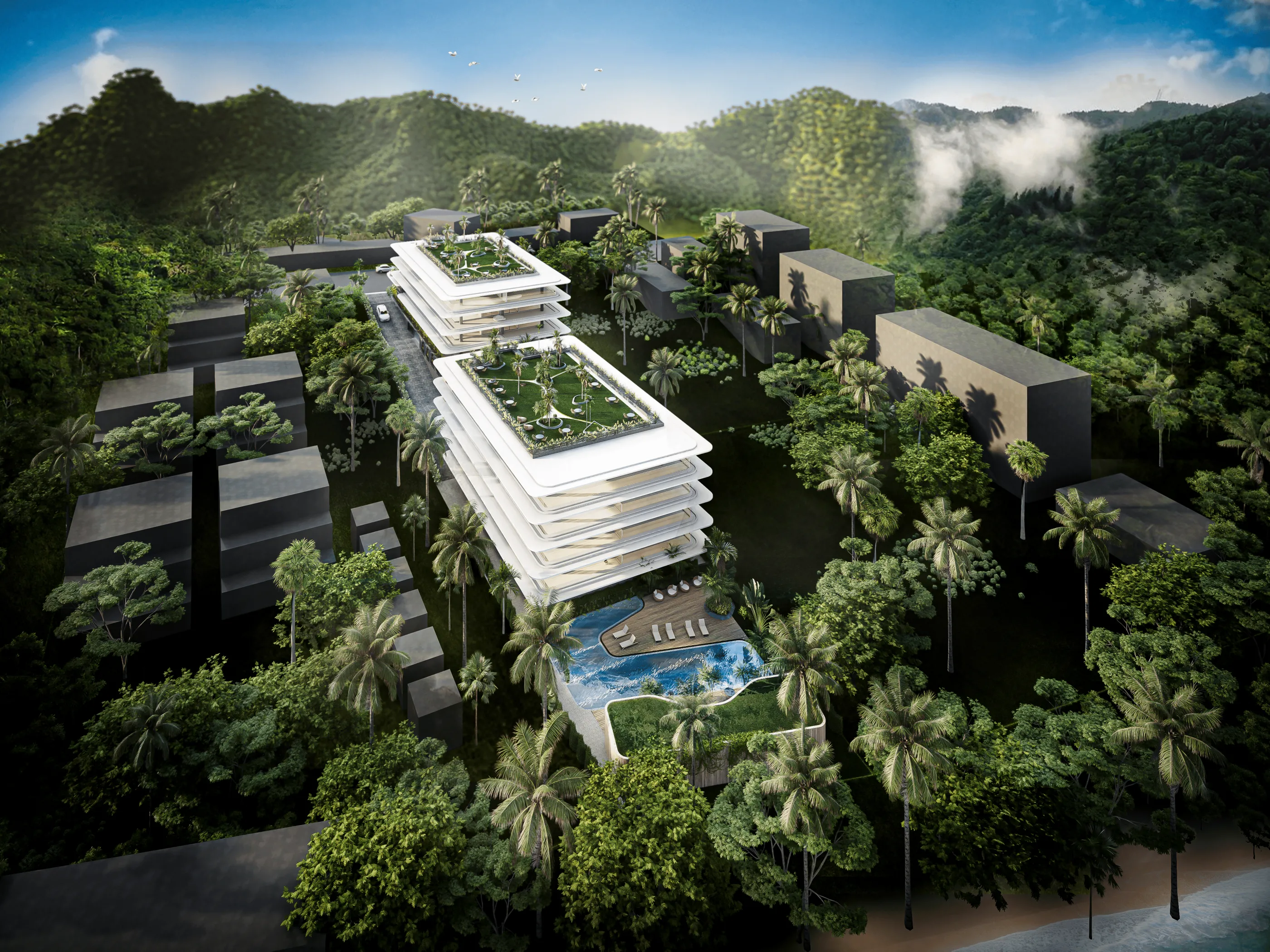 Проект расположен в тихом, но отличном месте, всего в 5-10 минутах езды от пляжа Раваи. Поблизости также есть множество ресторанов и продуктовых магазинов, в том числе Makro Rawai.