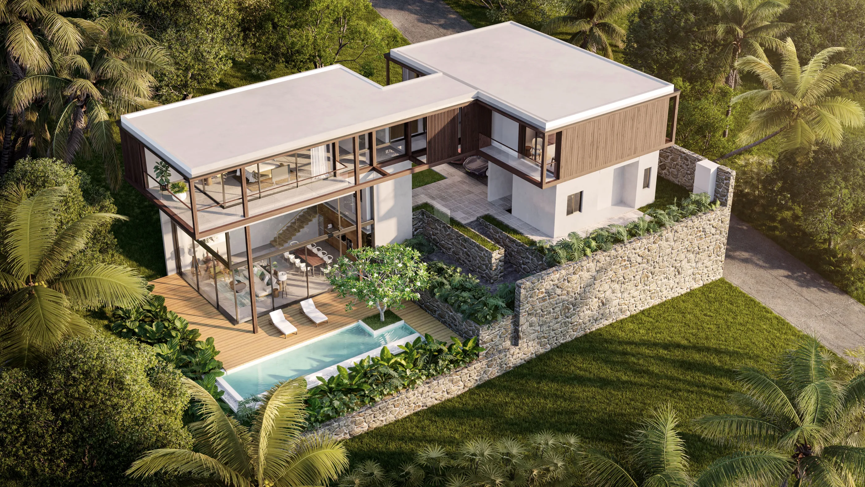 На закрытой территории 17 вилл, сочетающие тропическую архитектуру с элементами модерна, вдохновленные островной жизнью. Виллы имеют 3 или 4 спальни, все с собственным бассейном.