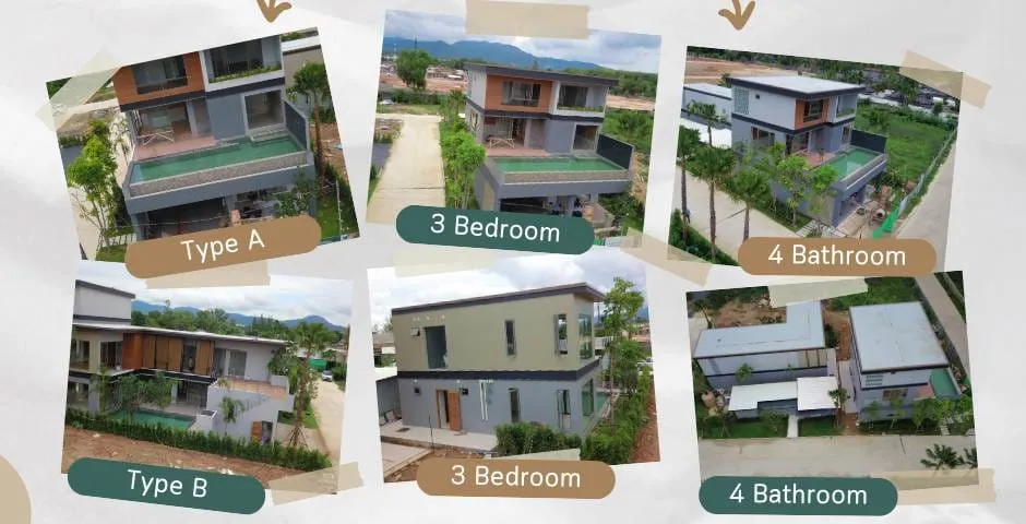 На закрытой и охраняемой территории находится 16 вилл с 3 спальнями и переменной этажностью 2 или 3 этажа. В стоимость включена отделка, кондиционеры, кухонный гарнитур и сантехника в ванных комнатах. За дополнительную плату может быть установлен пакет встроенной мебели, элементы декора, столовые принадлежности, полотенца и постельное белье.