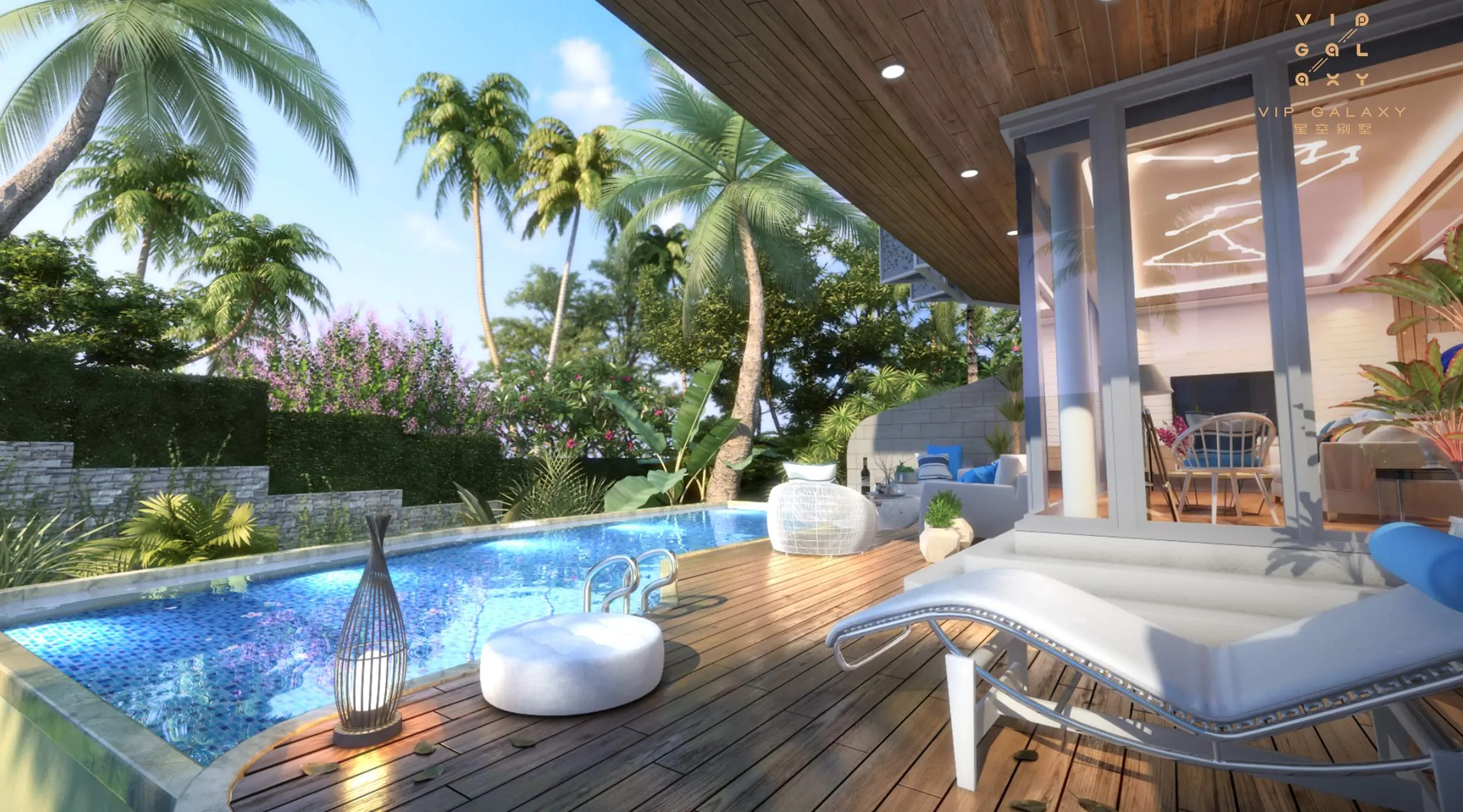 VIP Galaxy, большой комплекс роскошных вилл на юге Пхукета, предлагает на продажу три различных типа вилл, площадь которых составляет около 206-272 квадратных метров. В каждой отделанной вилле есть свой частный бассейн и частный сад.